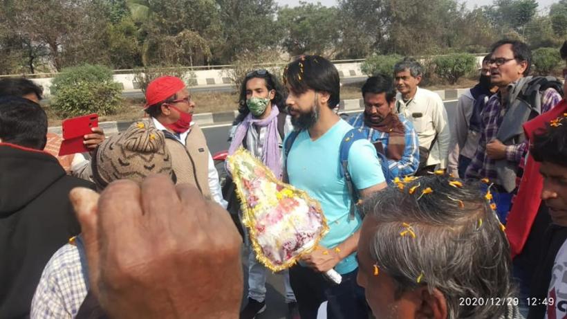 Those that are walking to join the agitation against the Farm Laws, which has been going on for more than a month now, include theatre and film actor Joyraj Bhattacharjee (41). The others are Soumyaranjan Mukherjee (23), Aniyan Roy (27) and Piyali Chatterjee (38).