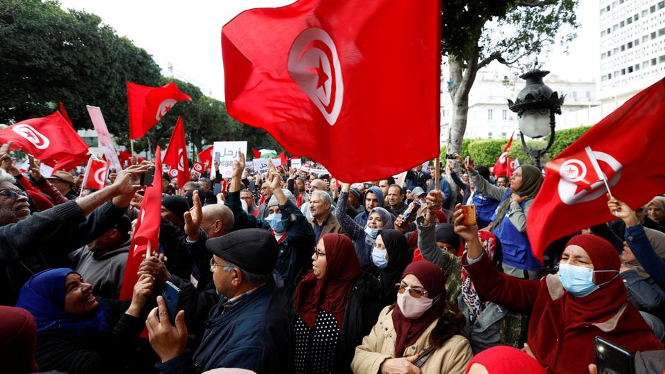 "Saied get out!" chanted protesters marching in the centre of Tunis.